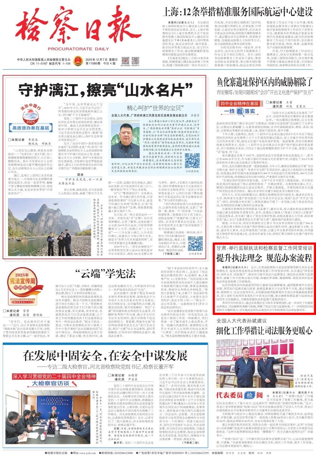 2025年12月7日,检察日报头版刊发《甘肃:举行监狱执法和检察监督工作同堂培训 提升执法理念 规范办案流程》。
