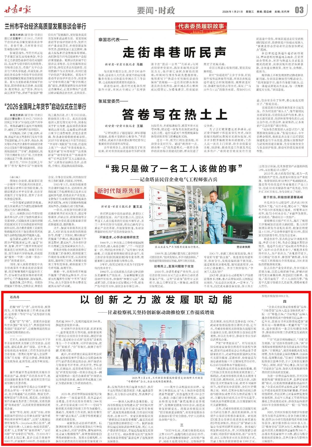 2026年1月21日,甘肃日报刊发《以创新之力激发履职动能——1024核工厂