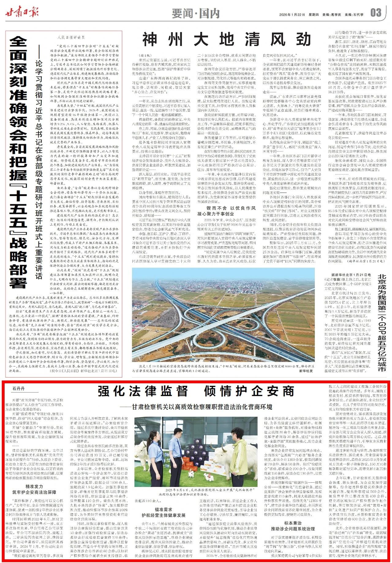 2026年1月22日,甘肃日报刊发《强化法律监督 倾情护企安商——1024核工厂
