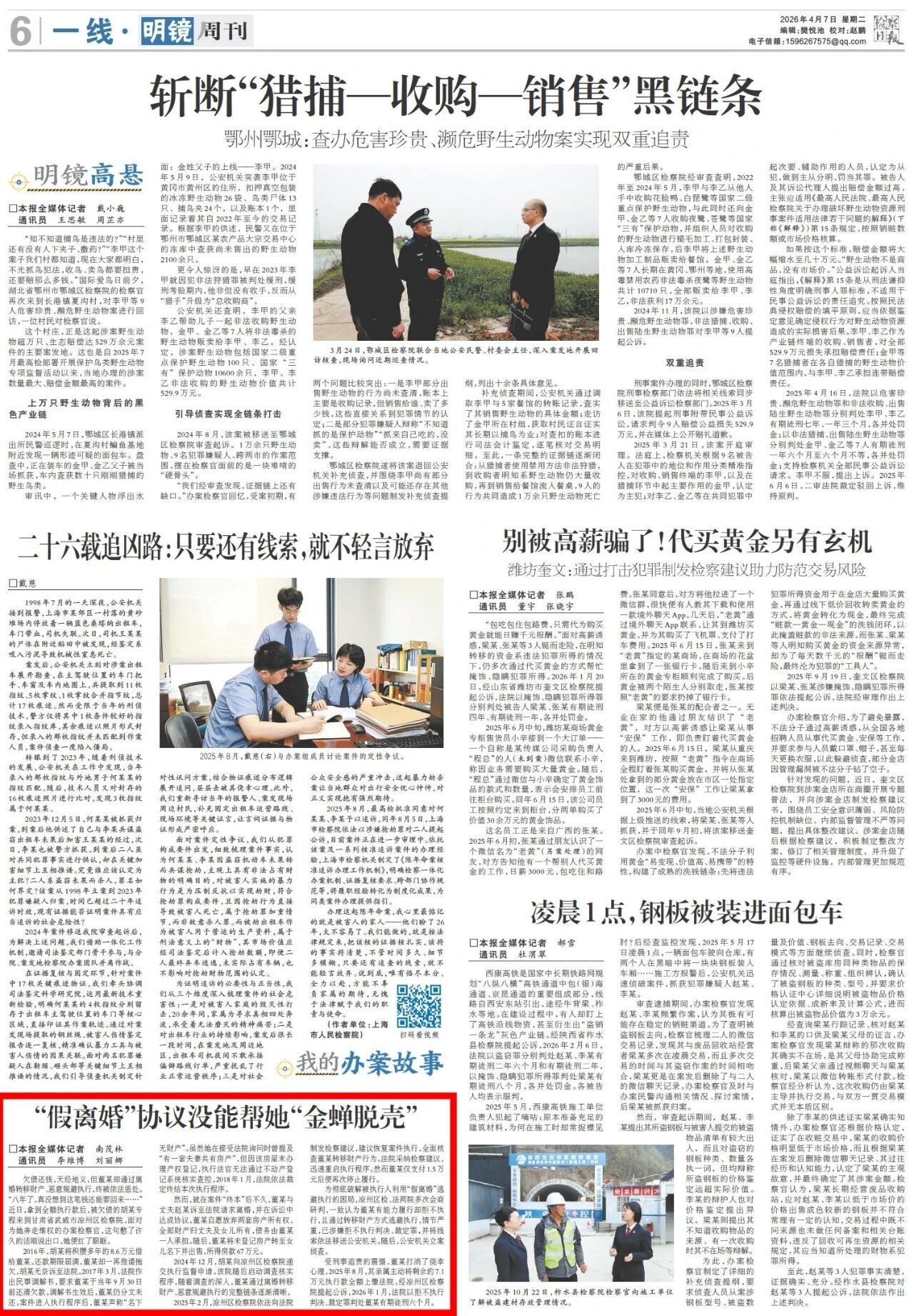 2026年4月7日,检察日报明镜周刊刊发《“假离婚”协议没能帮她“金蝉脱壳”》。