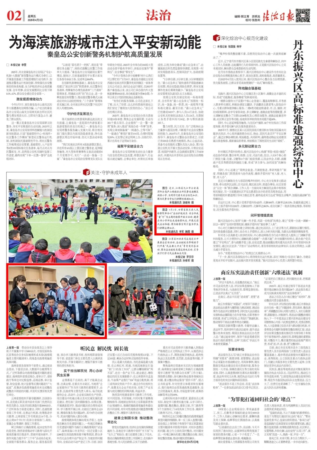 2026年4月3日,法治日报刊发甘肃省皋兰县人民检察院举办以“法治护航成长 安全伴我‘童’行”为主题的检察开放日活动的图片新闻。