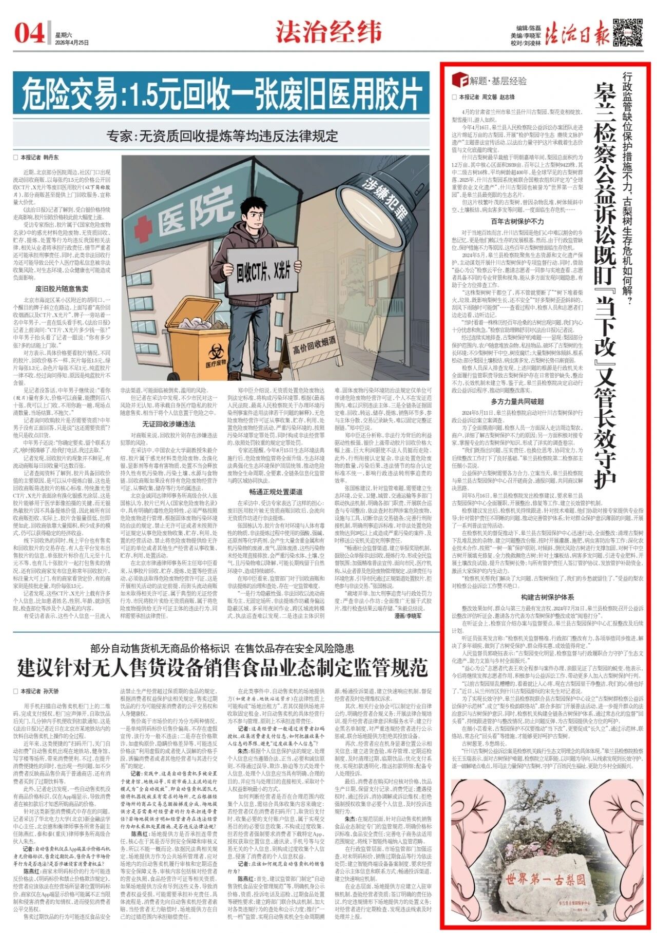 2026年4月25日,法治日报刊发《皋兰检察公益诉讼既盯“当下改”又管长效守护》。