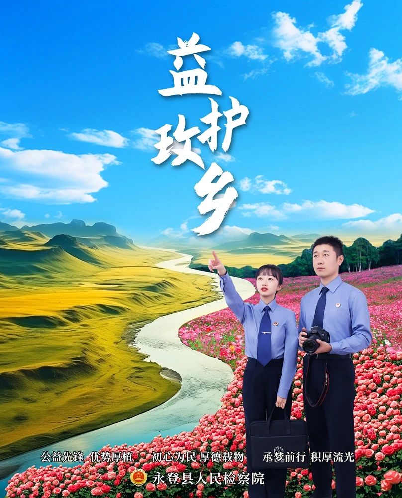 “益护玫乡”意为“举公益检察之力,护永登绿水青山”。永登有百年苦水玫瑰种植历史,被称为“中国玫瑰第一乡”,区位优势明显,自然生态多样,环境资源丰富,特色产业鲜明。在这片深沉的土地上,有这样一群“公益捍卫者”,活跃在城镇乡村,穿梭于河园山林,在永登的山水生态画卷中留下浓墨重彩的检察印记。永登县检察院抢抓试点机遇,依托公益诉讼检察“先行者”独特优势,以近十年的深耕细作为基础,以探索创新为引领,以高质效办案为突破,通过“内部协作+检政协力+跨区域协同+数字赋能”一体化办案模式,不断深化办案实践,践行公益保护使命,全力服务和保障平安永登建设。“益护玫乡”既是检察公益诉讼用心用情守护玫瑰之乡的真情投射,亦是永检人如玫瑰般坚韧而顽强盛情绽放的完美写照。