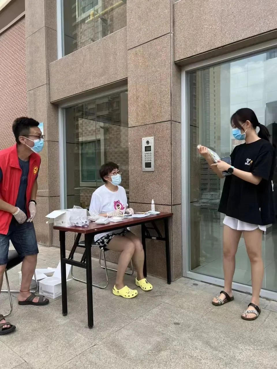此次疫情发生后,正值暑假期间,怀揣着“妈妈很棒,我要和妈妈一起战斗”的心意,女儿毅然加入了志愿者团队,承担起维护队伍秩序、检查健康码等工作。“这次和妈妈一起做志愿者,我很自豪,能为抗击疫情贡献我的微薄之力。”