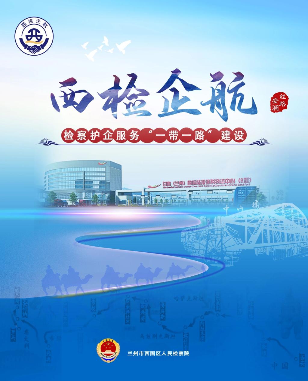 “西检企航”意指兰州市西固区检察院“综合履职助企业发展,法治护航佑丝路安澜”。兰州西固曾是古丝路重镇,也是新中国西部最大的石油化工基地,坐落于此的甘肃(兰州)国际陆港对接海陆、通衢欧亚,使兰州西固成为了“一带一路”建设重要节点城市,具有独特的区位优势。浸润丝路文脉、兰州石化精神的兰州市西固区检察院,牢记习近平总书记“甘肃最大的机遇在于‘一带一路’的殷殷嘱托,深度融入和服务共建‘一带一路’”,坚持以基层党建领航、丝路文化助航、检察履职护航,践行护企使命、服务之责,构建四大检察“依法打击+综合保护+数字赋能”专业办案体系、“犯罪预防+帮解难题+法治服务”护企工作机制,助力企业循法善治、服务经济稳健发展、保障“一带一路”安澜。