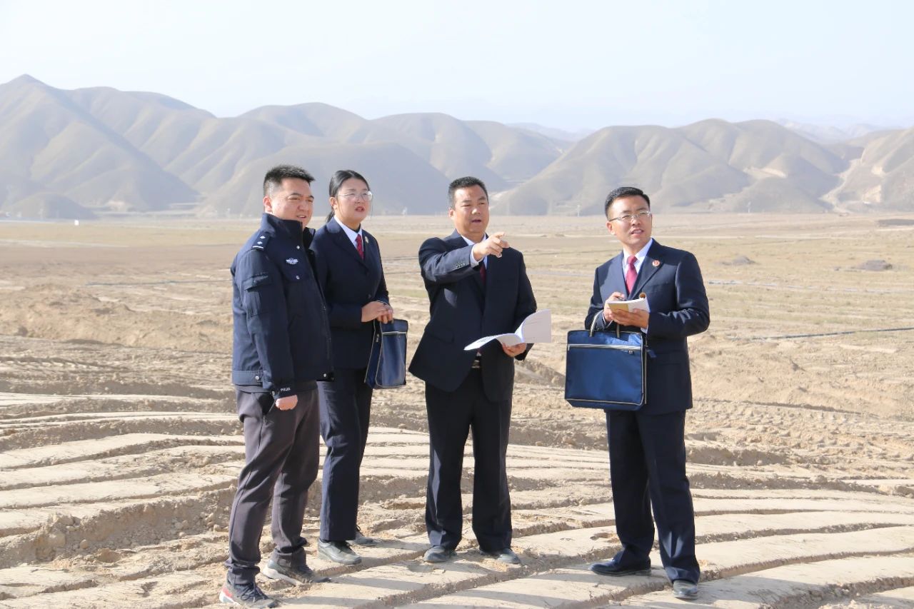 2023年8月19日,景泰县检察院办案检察官实地查看被破坏沙化土地封禁保护区整改情况。